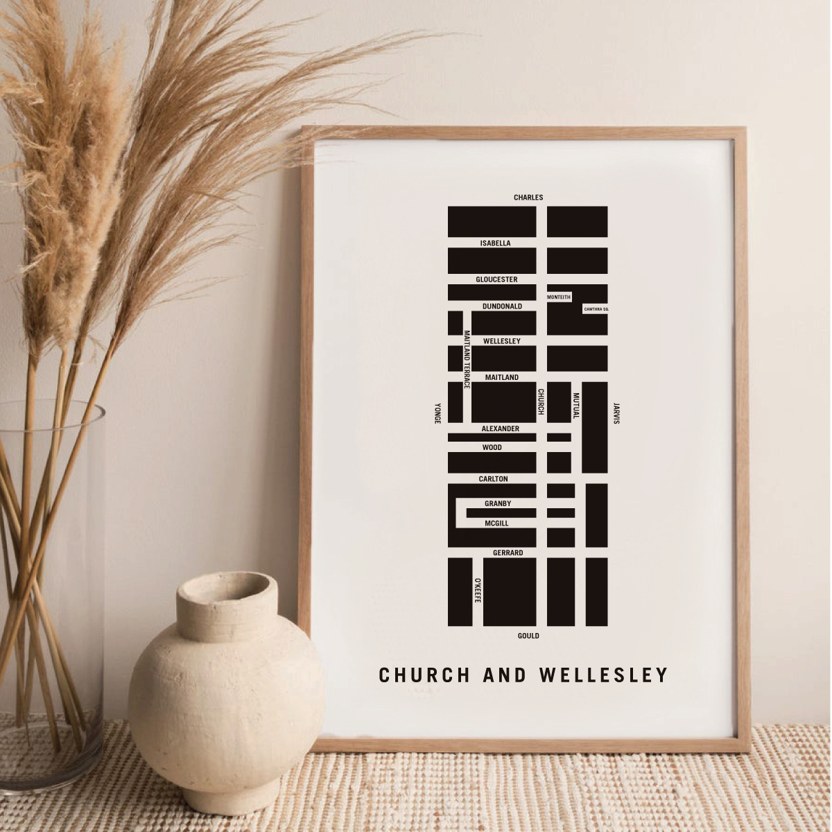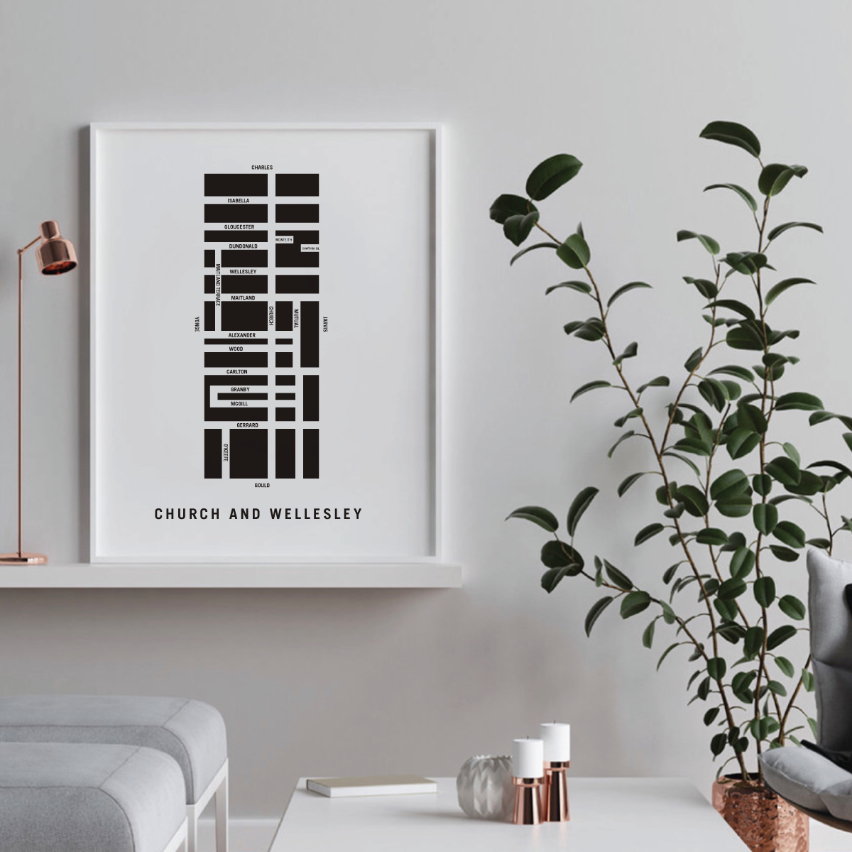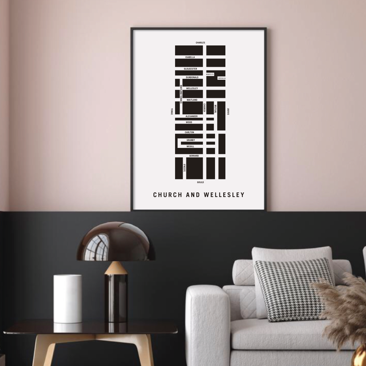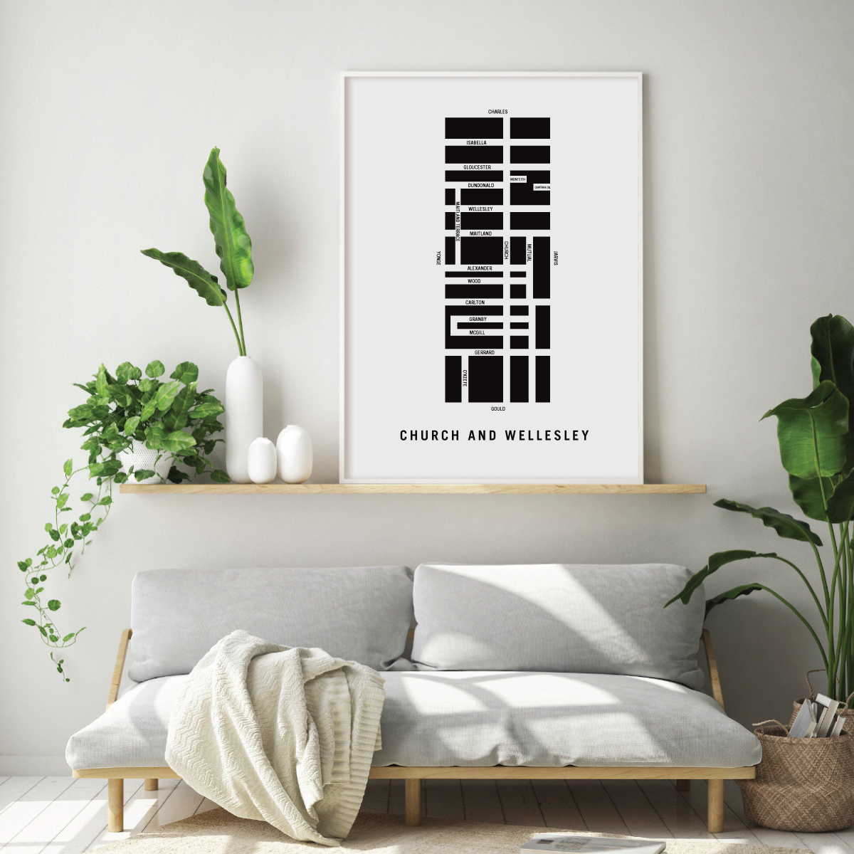 Church and Wellesley neighbourhood map prints make the best housewarming gift for friends and couples. The perfect gift for new homeowners who have just bought their first home. Pay tribute to your favourite neighbourhood or city and customize the map with a heart on your home location. The perfect realtor gift idea.