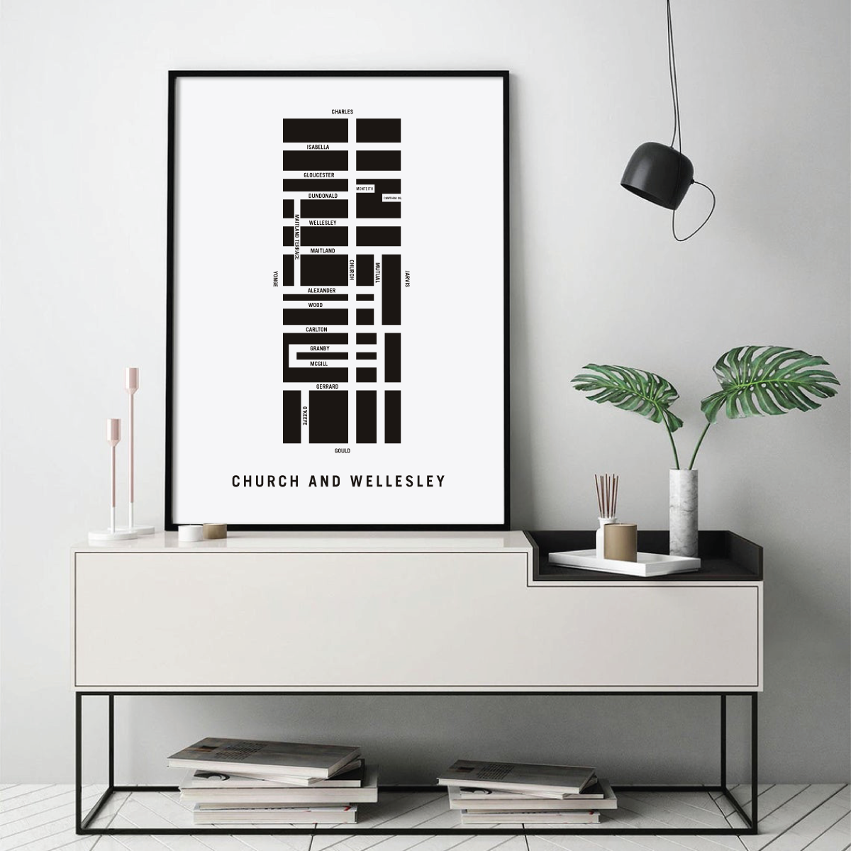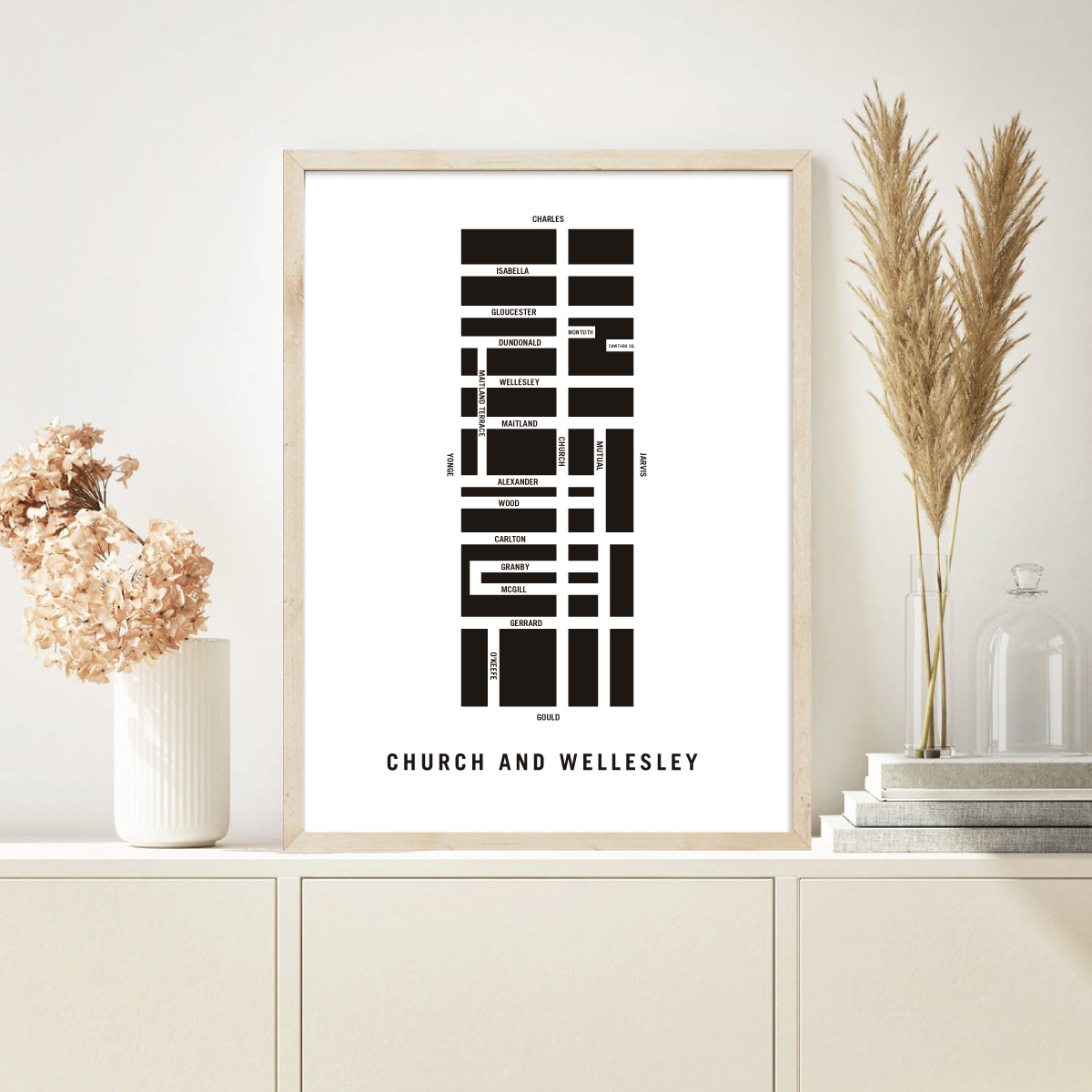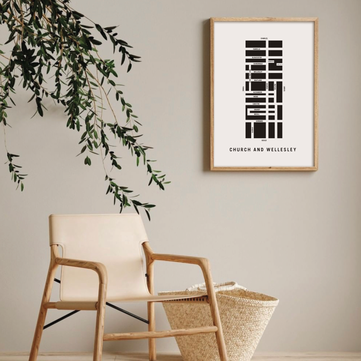Church and Wellesley neighbourhood map prints make the best housewarming gift for friends and couples. The perfect gift for new homeowners who have just bought their first home. Pay tribute to your favourite neighbourhood or city and customize the map with a heart on your home location. The perfect realtor gift idea.