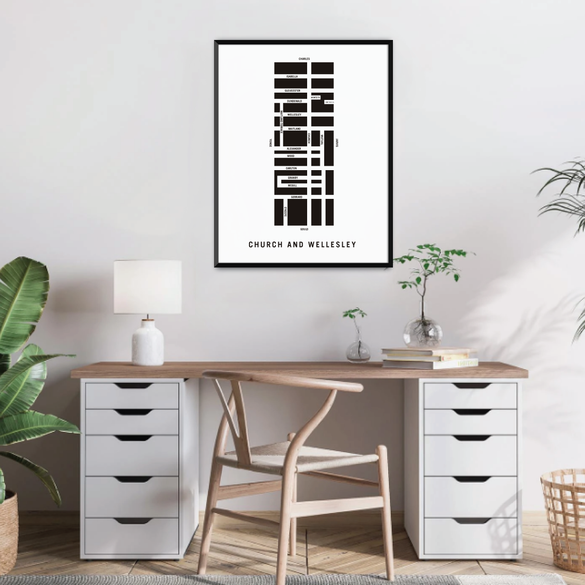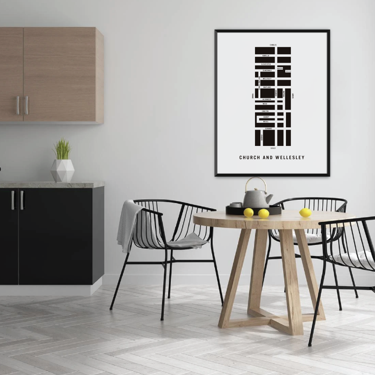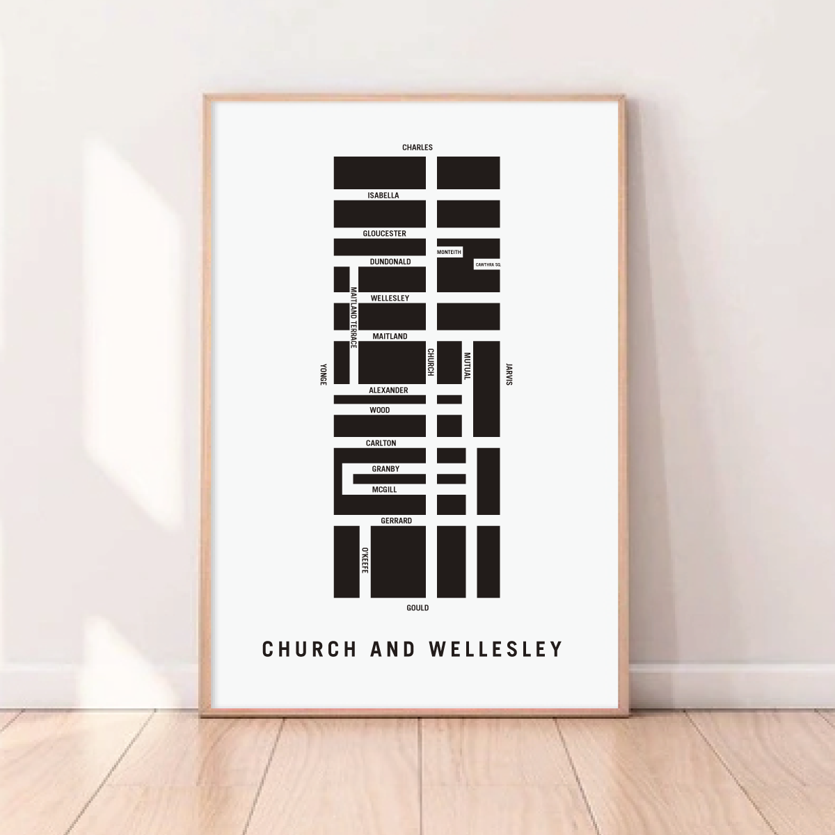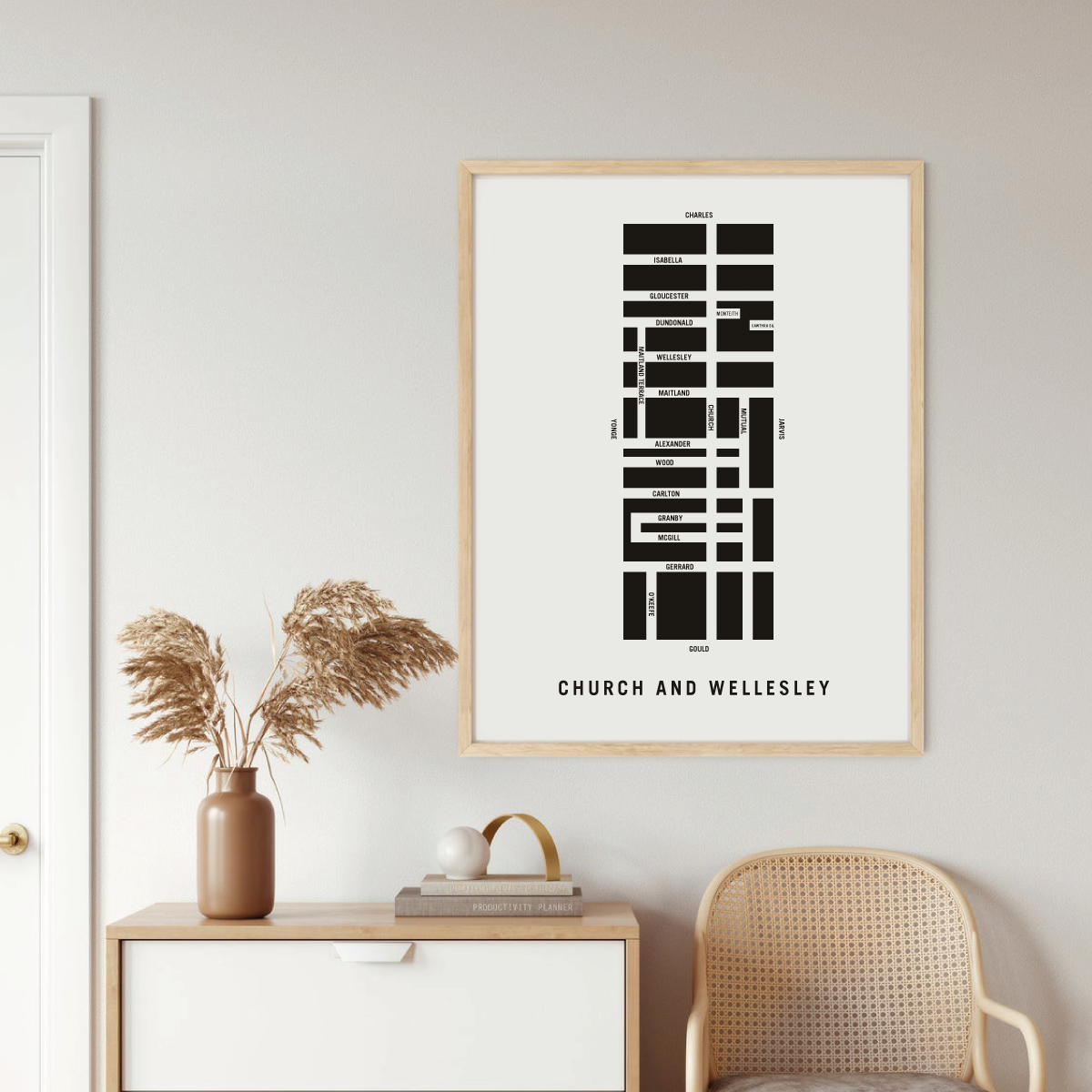 Church and Wellesley neighbourhood map prints make the best housewarming gift for friends and couples. The perfect gift for new homeowners who have just bought their first home. Pay tribute to your favourite neighbourhood or city and customize the map with a heart on your home location. The perfect realtor gift idea.