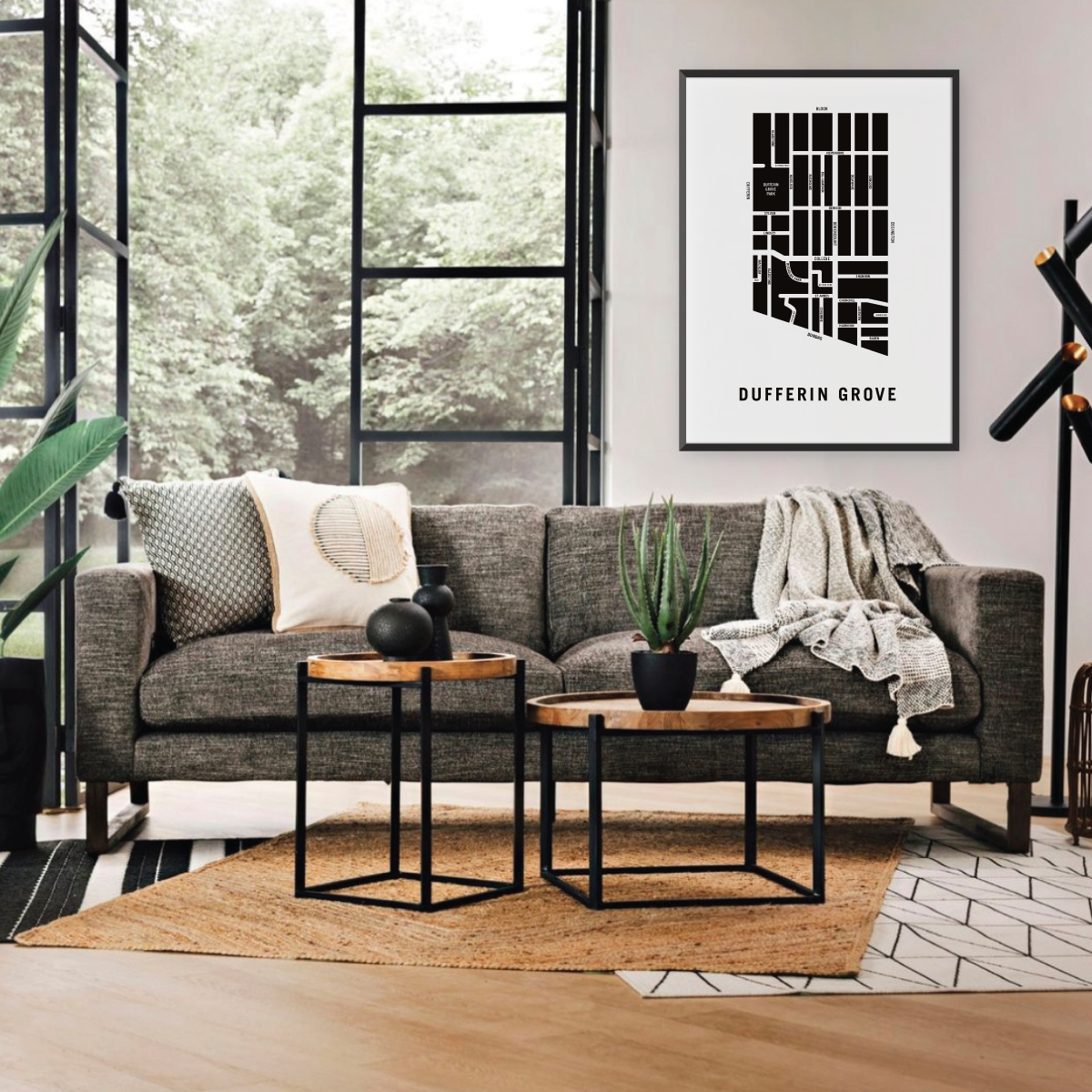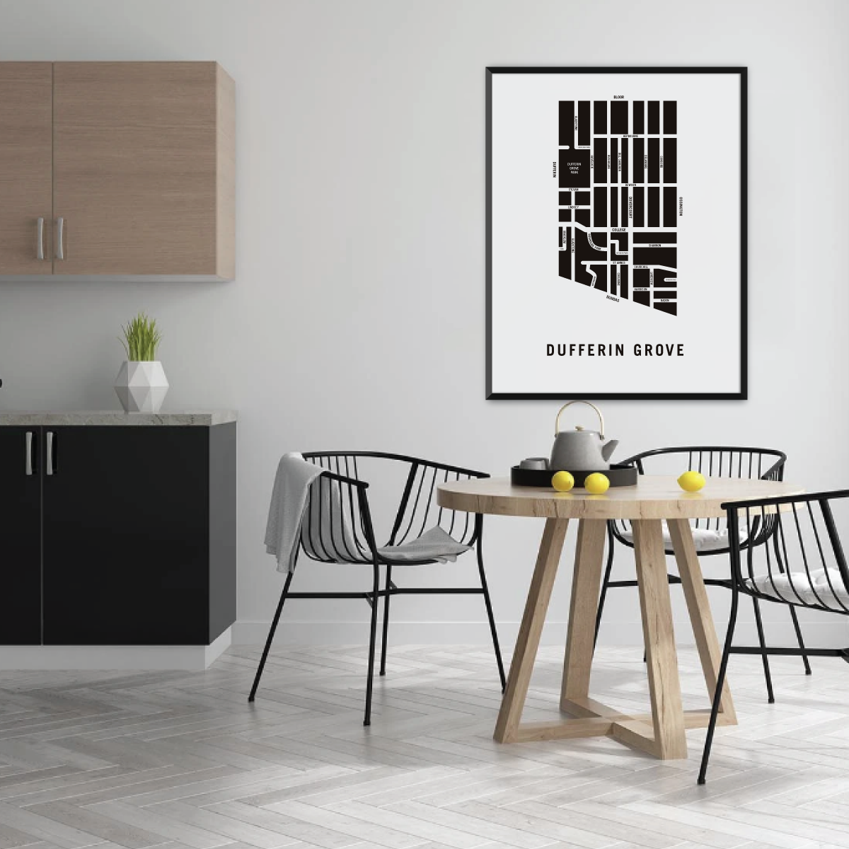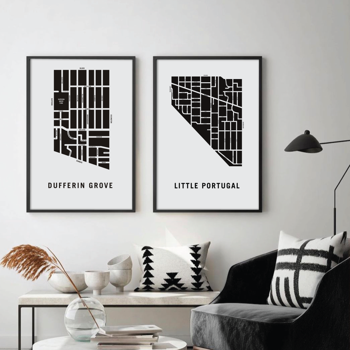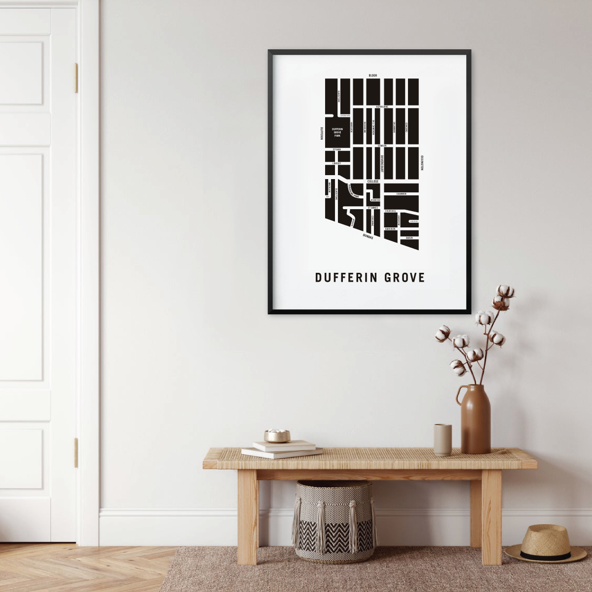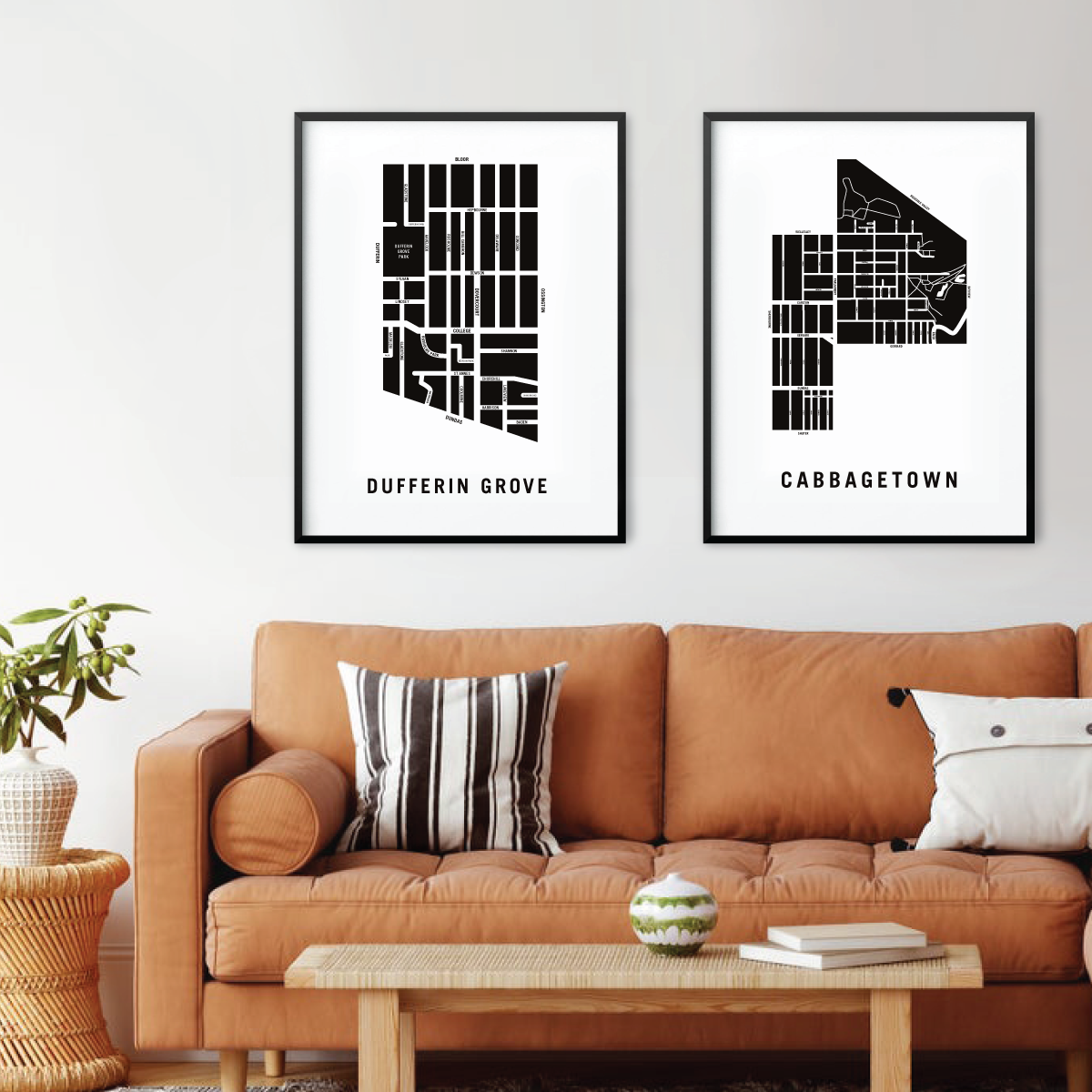 Dufferin Grove neighbourhood map prints make the best housewarming gift for friends and couples. The perfect gift for new homeowners who have just bought their first home. Pay tribute to your favourite neighbourhood or city and customize the map with a heart on your home location. The perfect realtor gift idea.