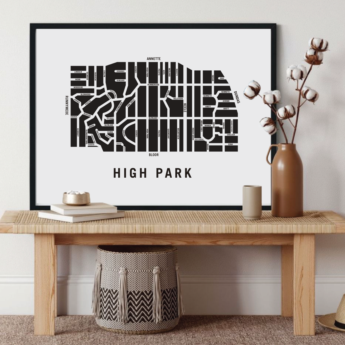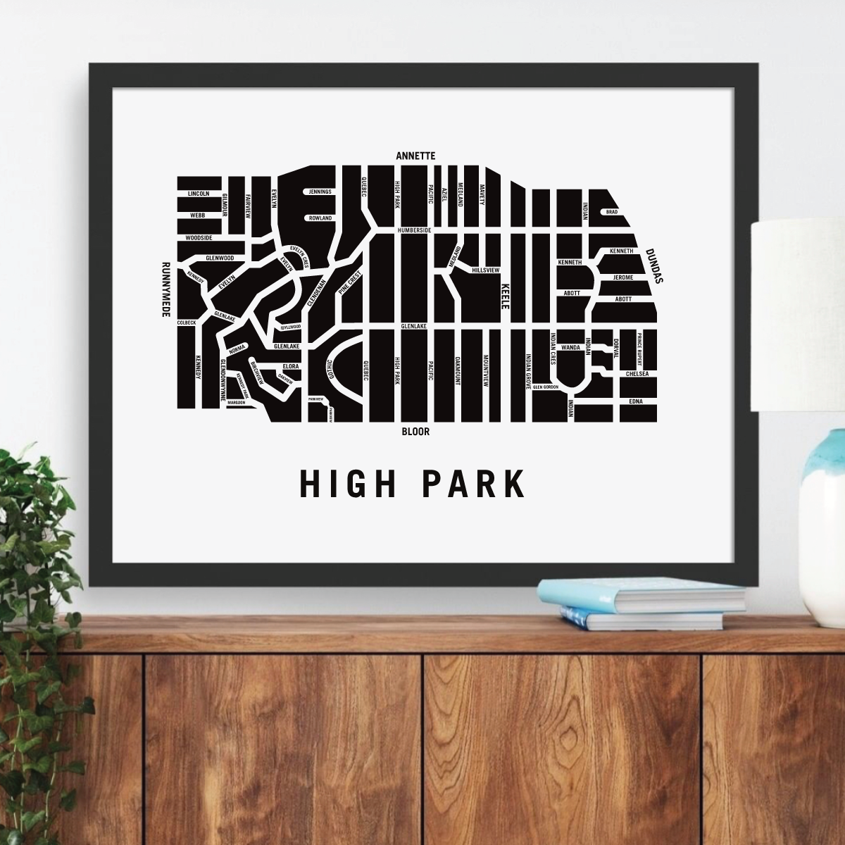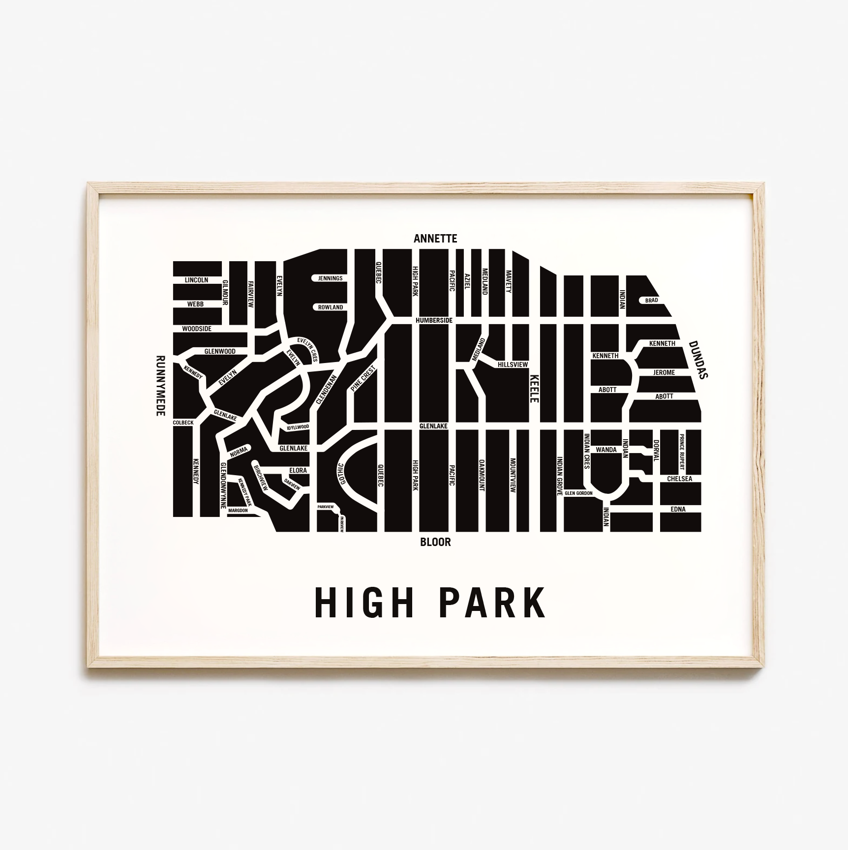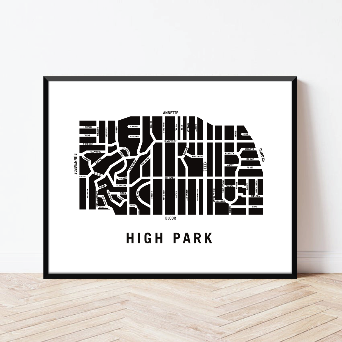 High Park neighbourhood map prints make the best housewarming gift for friends and couples. The perfect gift for new homeowners who have just bought their first home. Pay tribute to your favourite neighbourhood or city and customize the map with a heart on your home location. The perfect realtor gift idea.