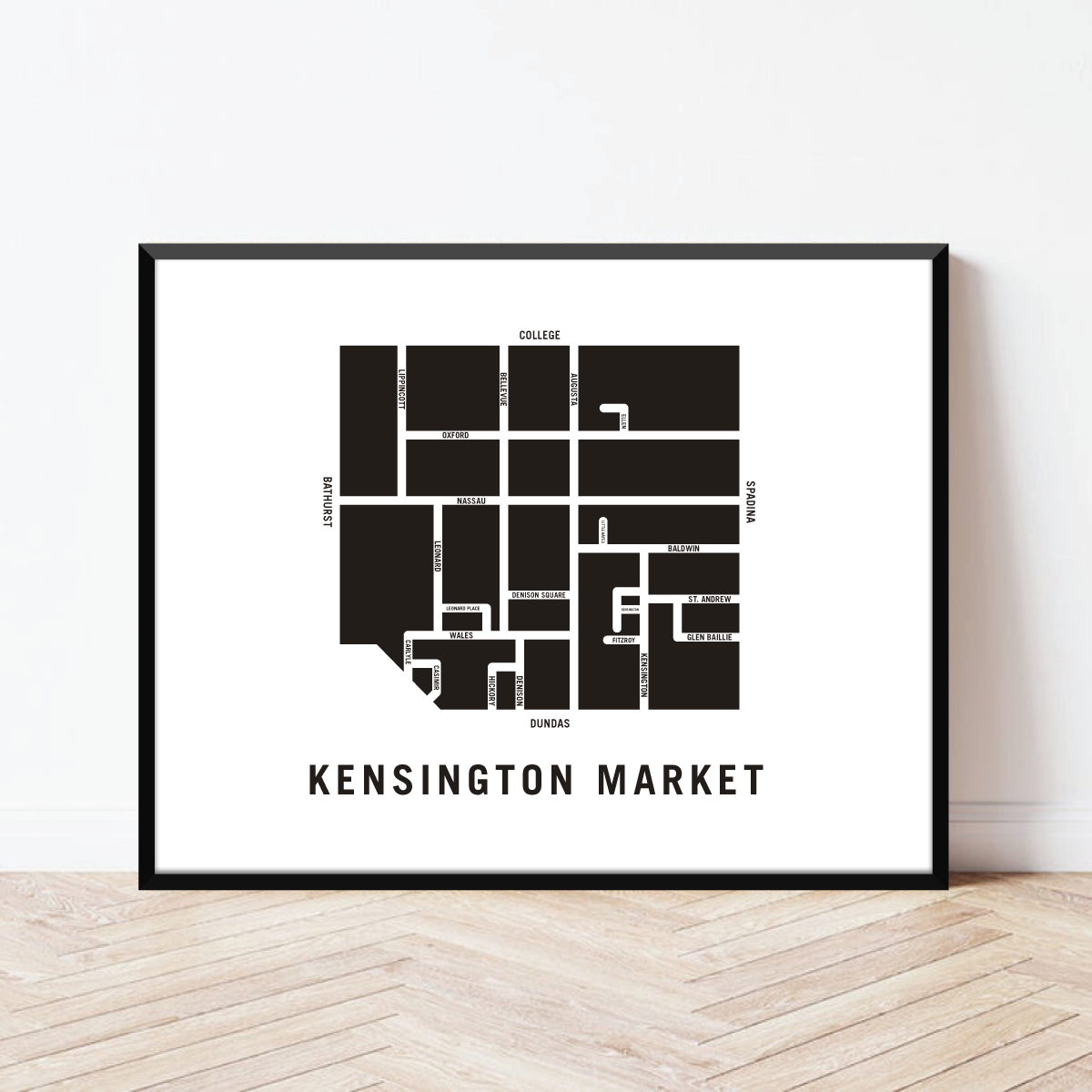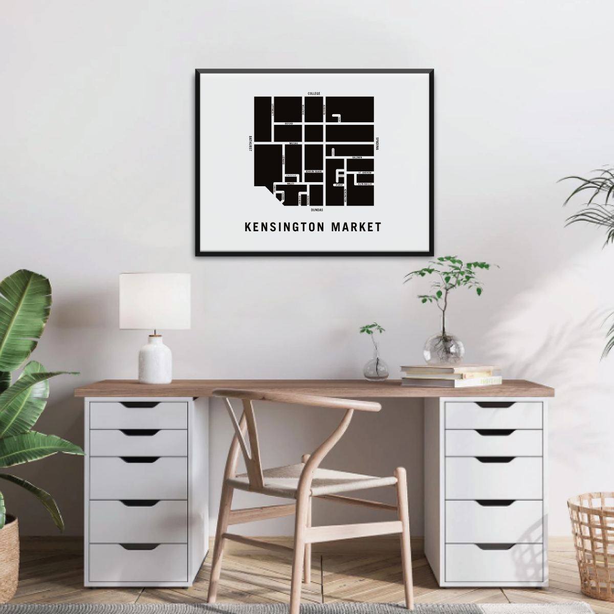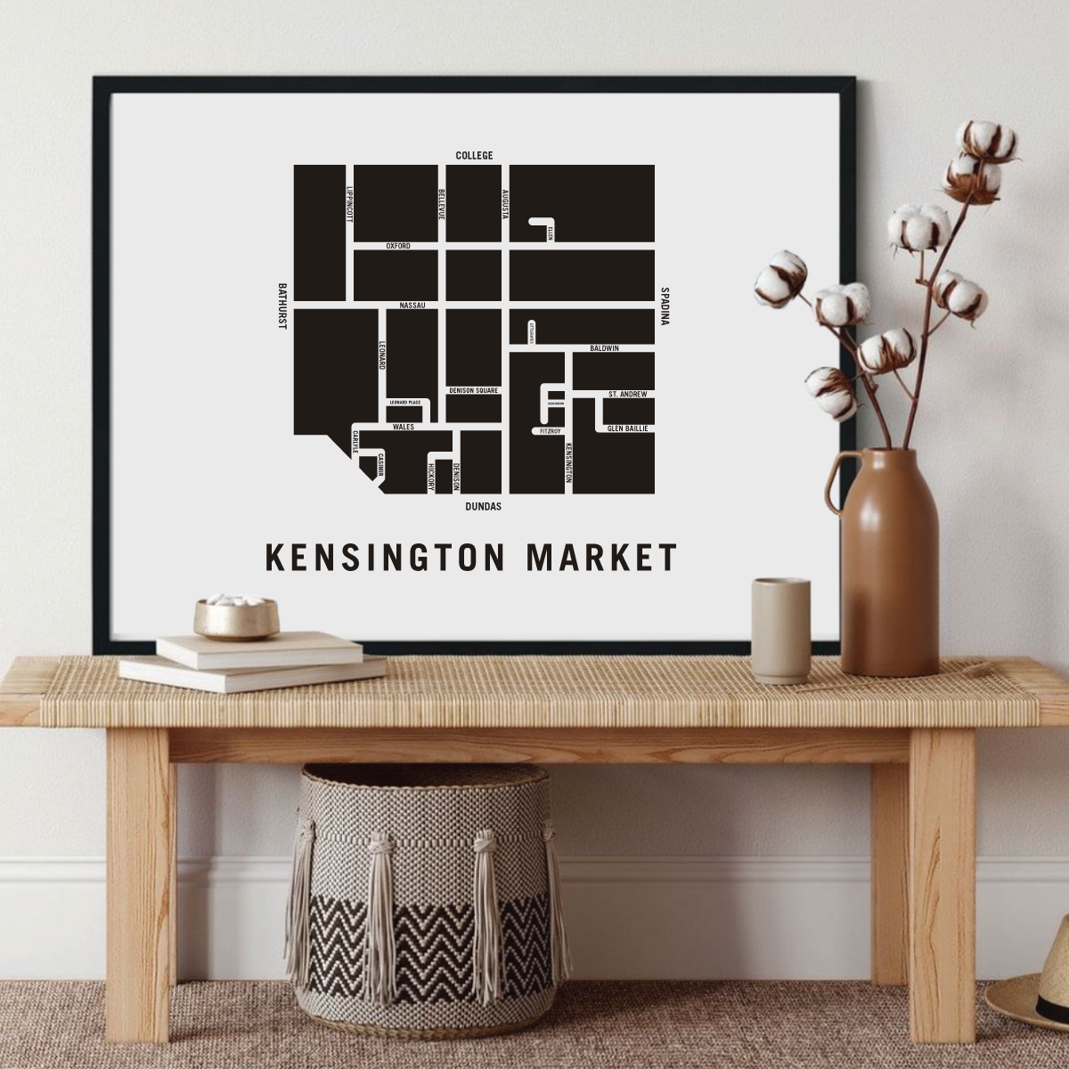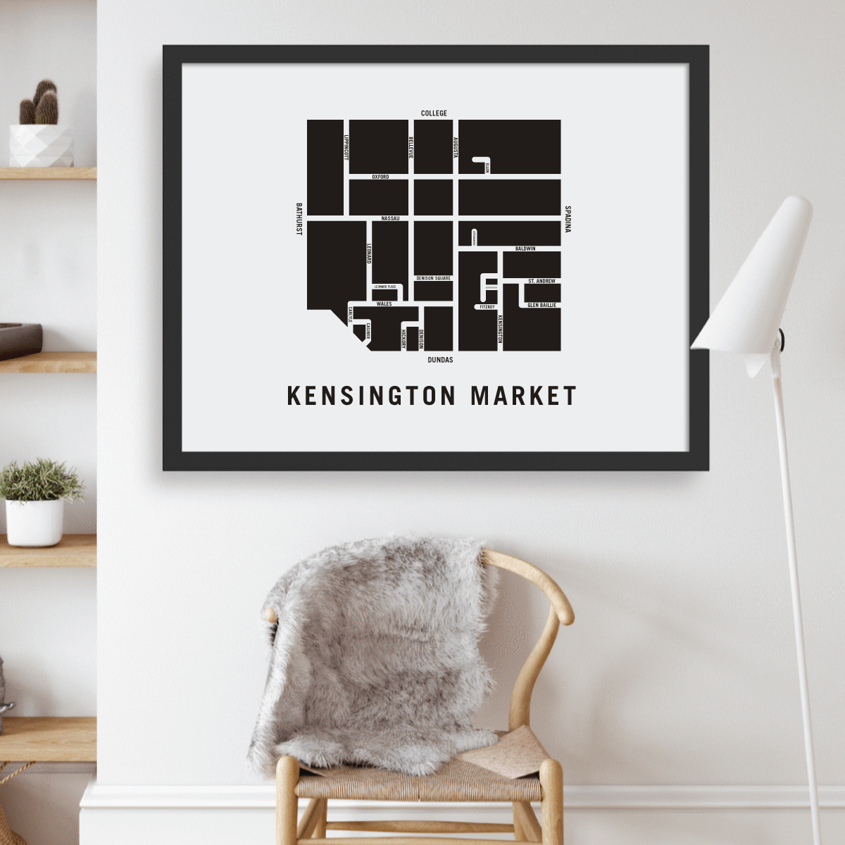 Kensington Market neighbourhood map prints make the best housewarming gift for friends and couples. The perfect gift for new homeowners who have just bought their first home. Pay tribute to your favourite neighbourhood or city and customize the map with a heart on your home location. The perfect realtor gift idea.
