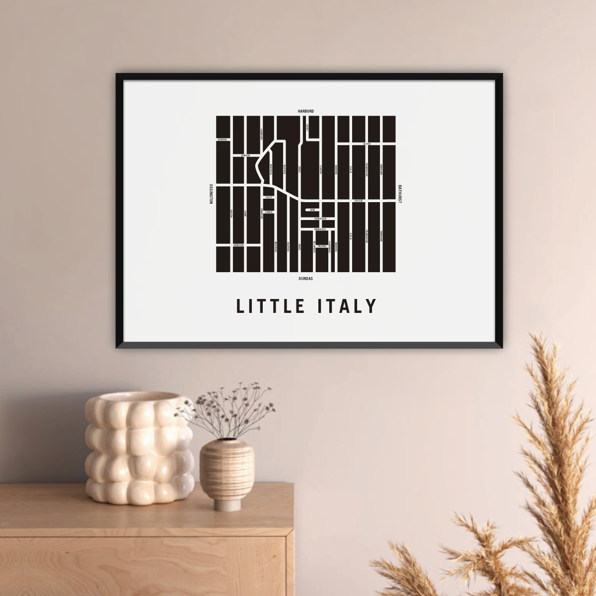 Little Italy neighbourhood map prints make the best housewarming gift for friends and couples. The perfect gift for new homeowners who have just bought their first home. Pay tribute to your favourite neighbourhood or city and customize the map with a heart on your home location. The perfect realtor gift idea.