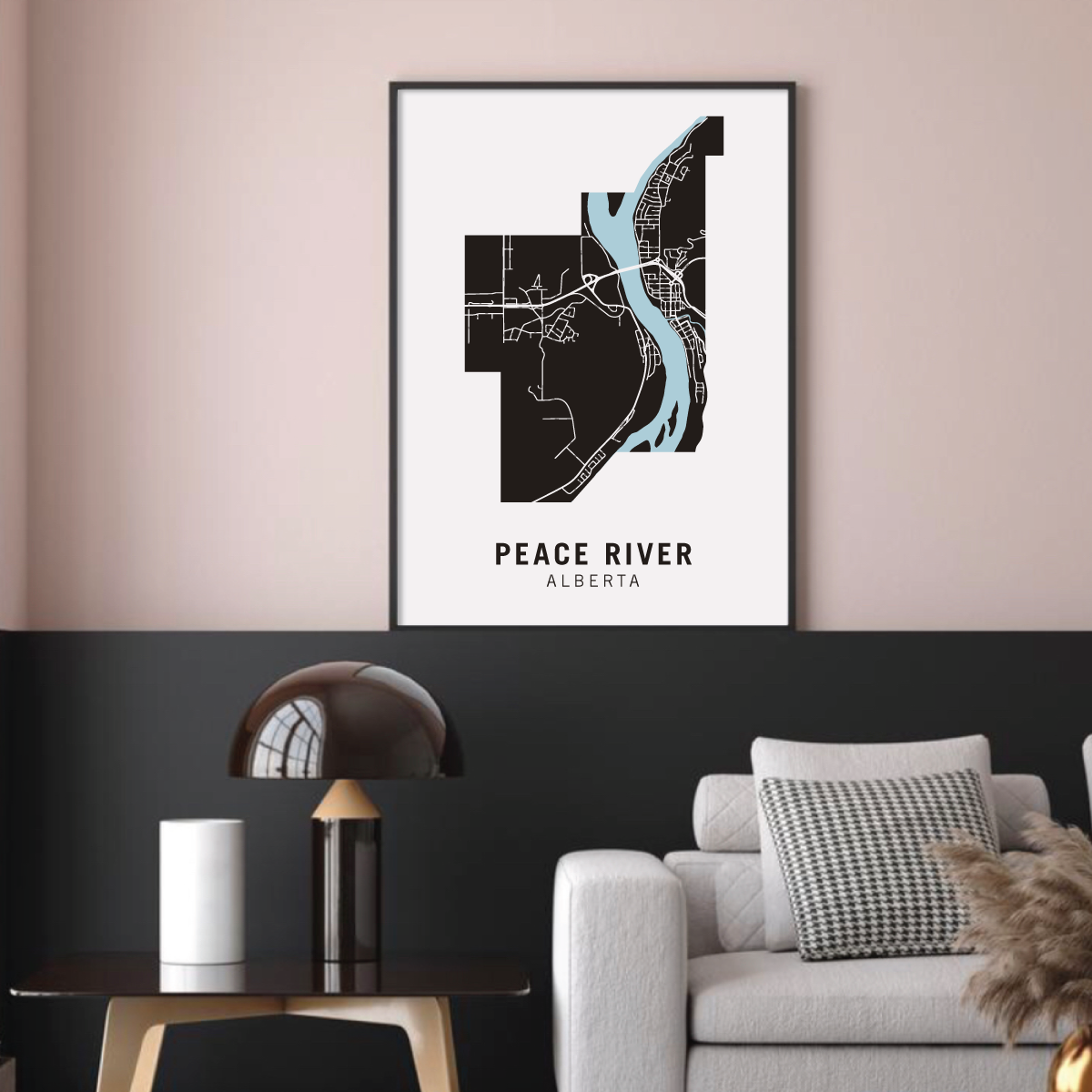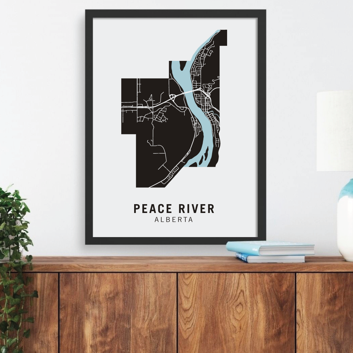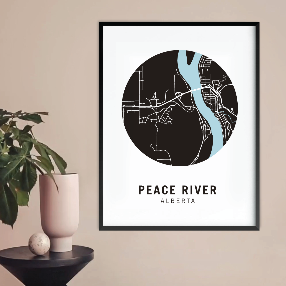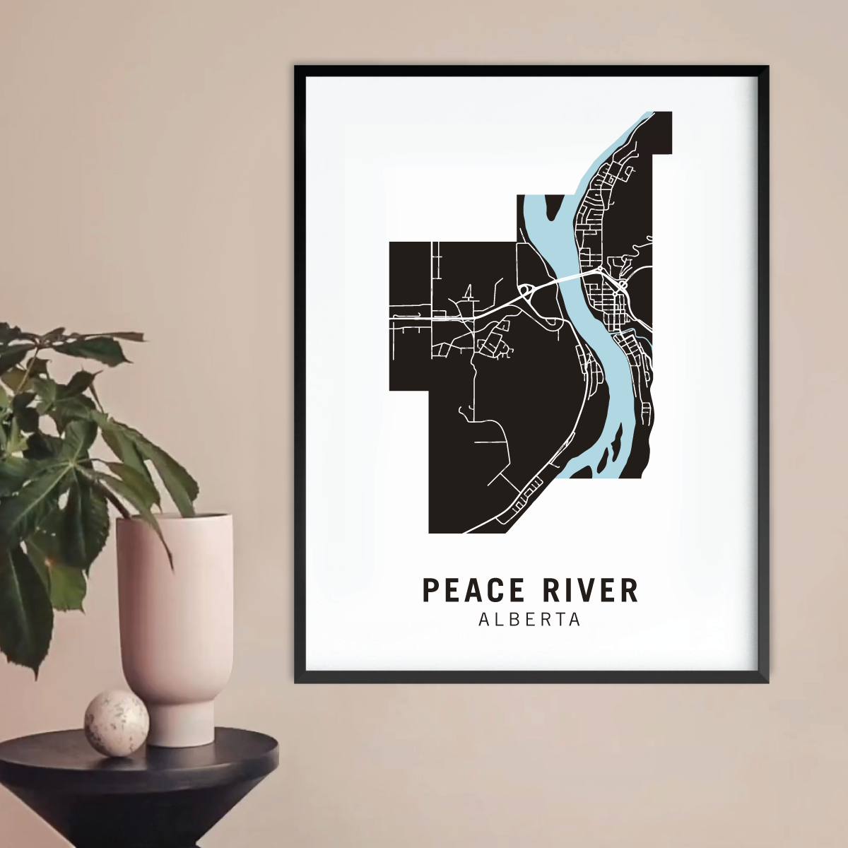 Peace River neighbourhood map prints make the best housewarming gift for friends and couples. Pay tribute to your favourite neighbourhood or city and customize the map with a heart on your home location.