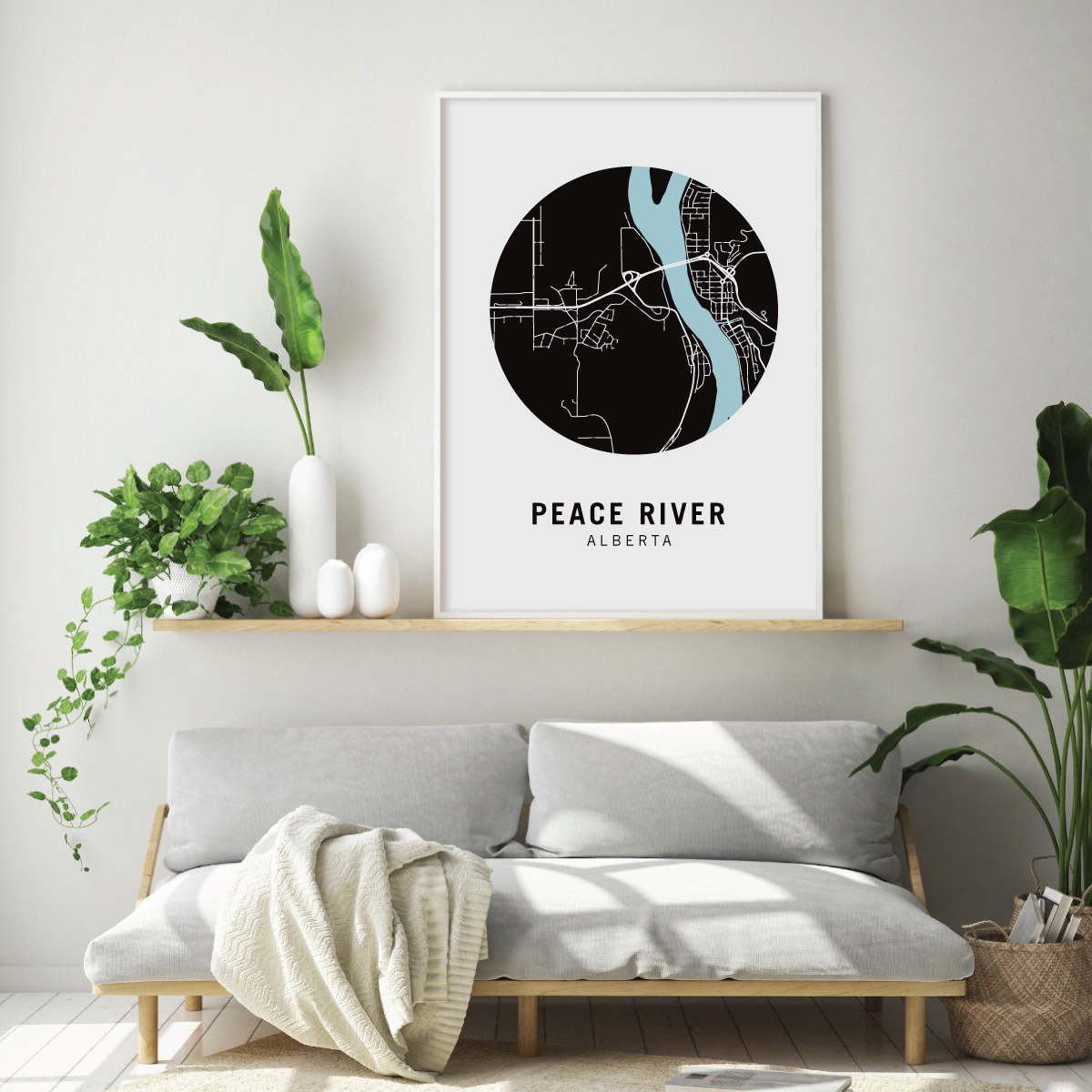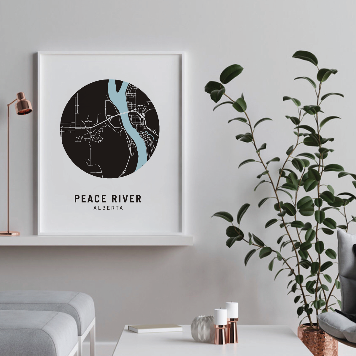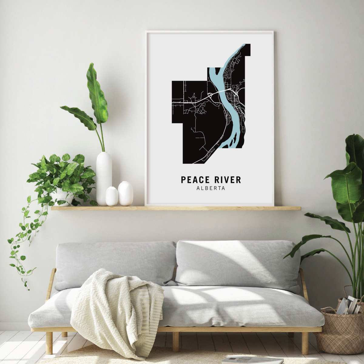 Peace River neighbourhood map prints make the best housewarming gift for friends and couples. Pay tribute to your favourite neighbourhood or city and customize the map with a heart on your home location.