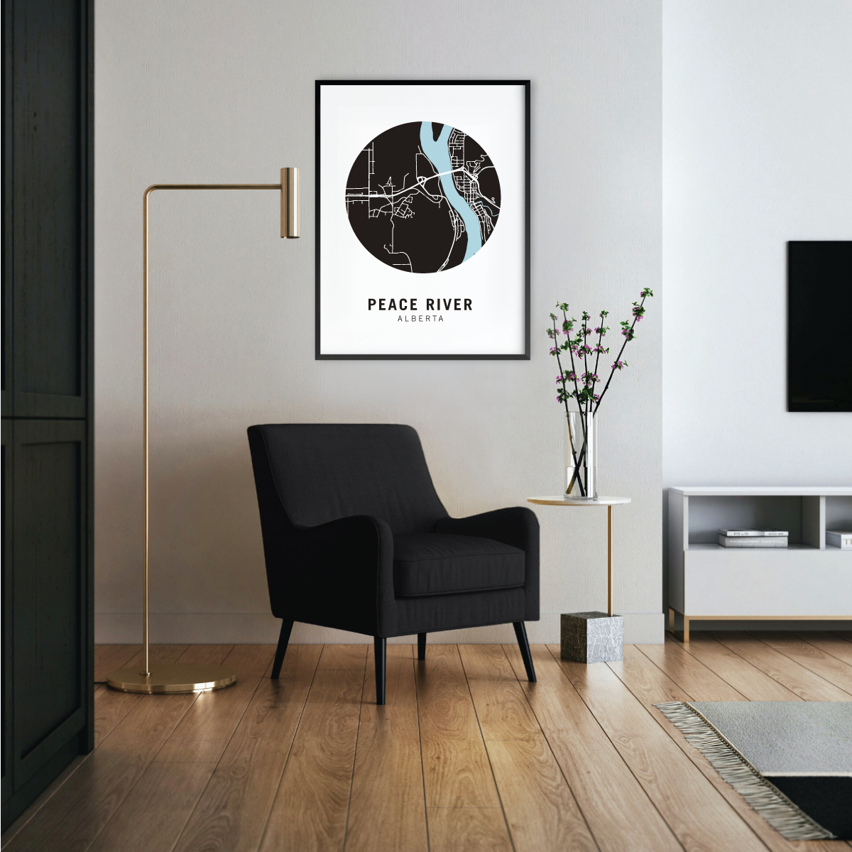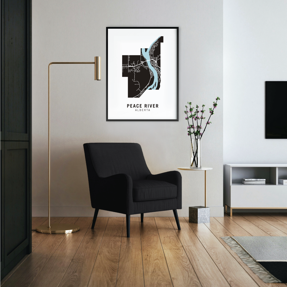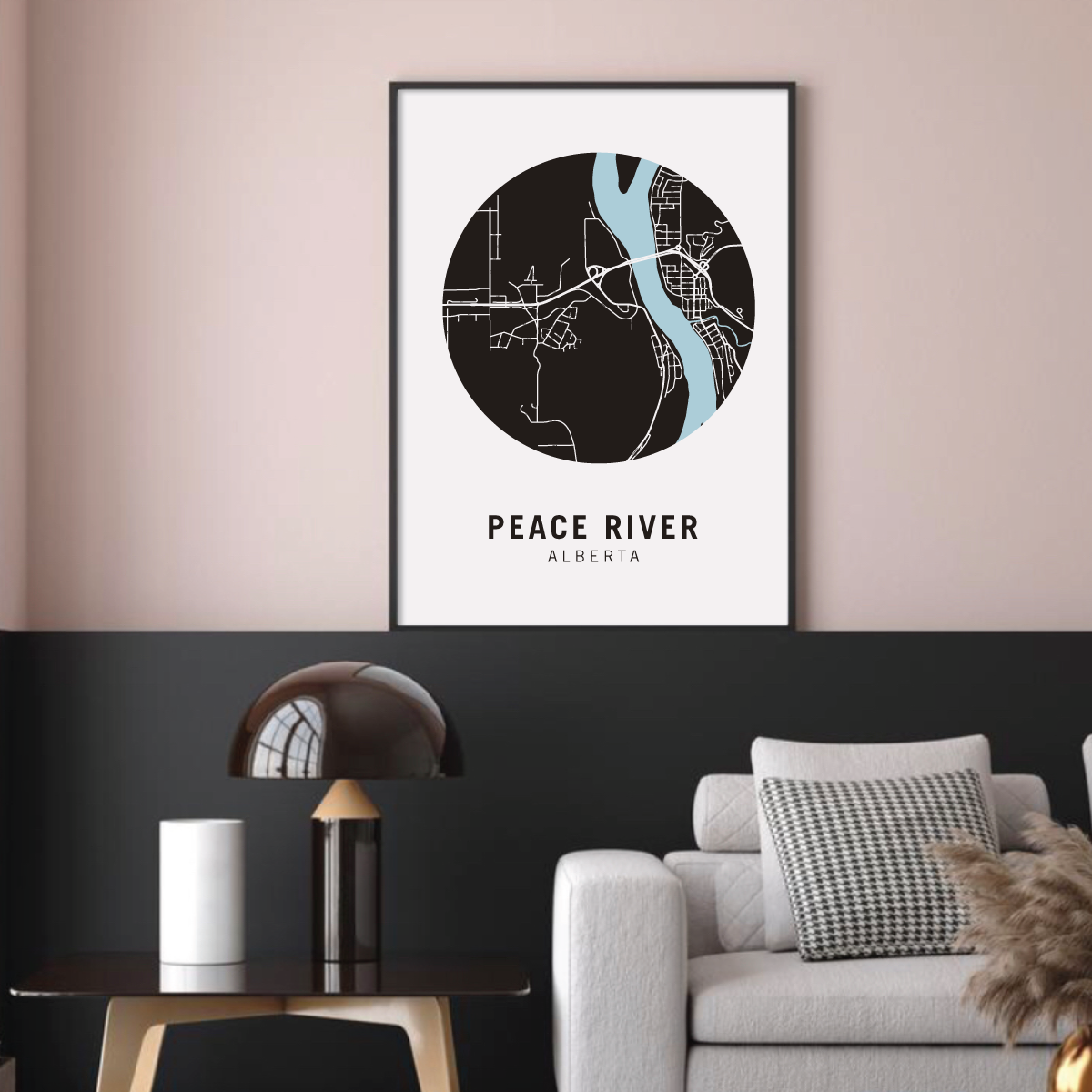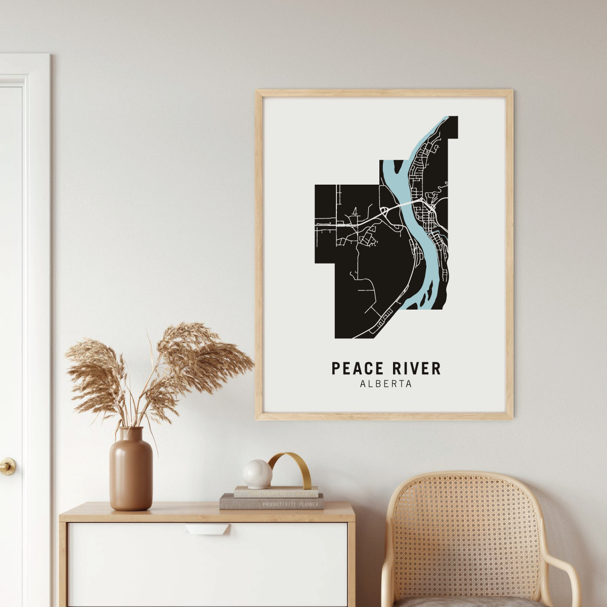 Peace River neighbourhood map prints make the best housewarming gift for friends and couples. Pay tribute to your favourite neighbourhood or city and customize the map with a heart on your home location.