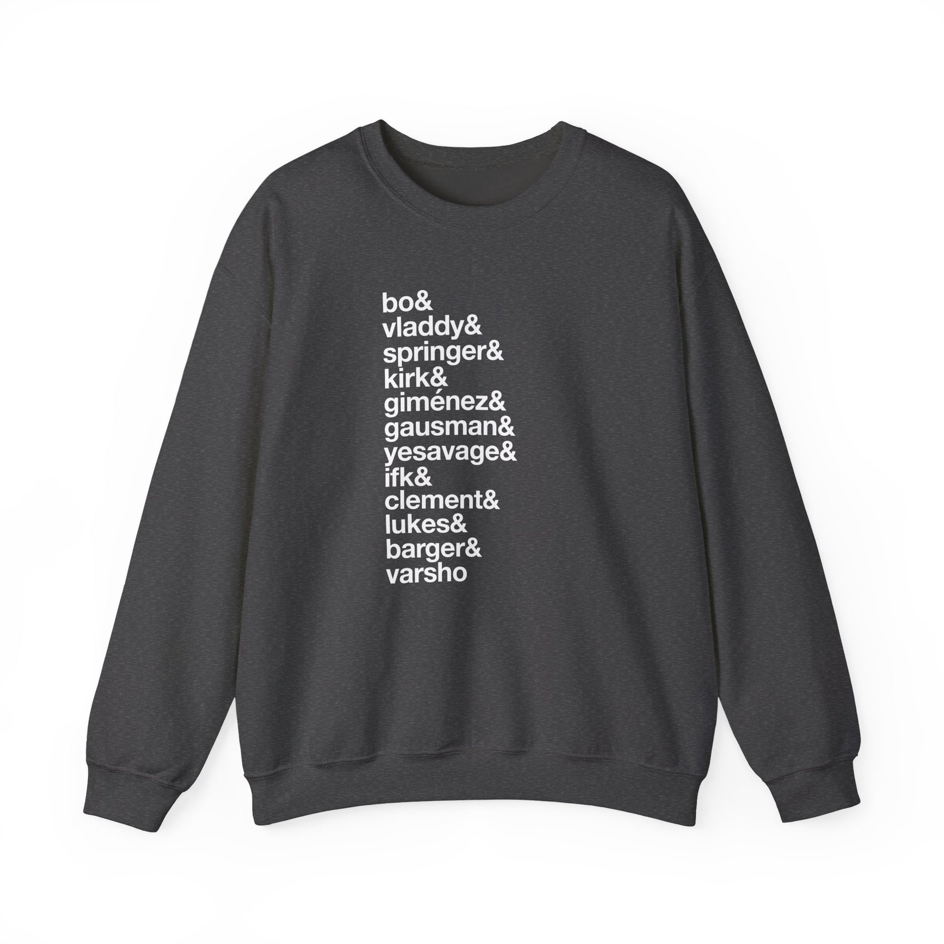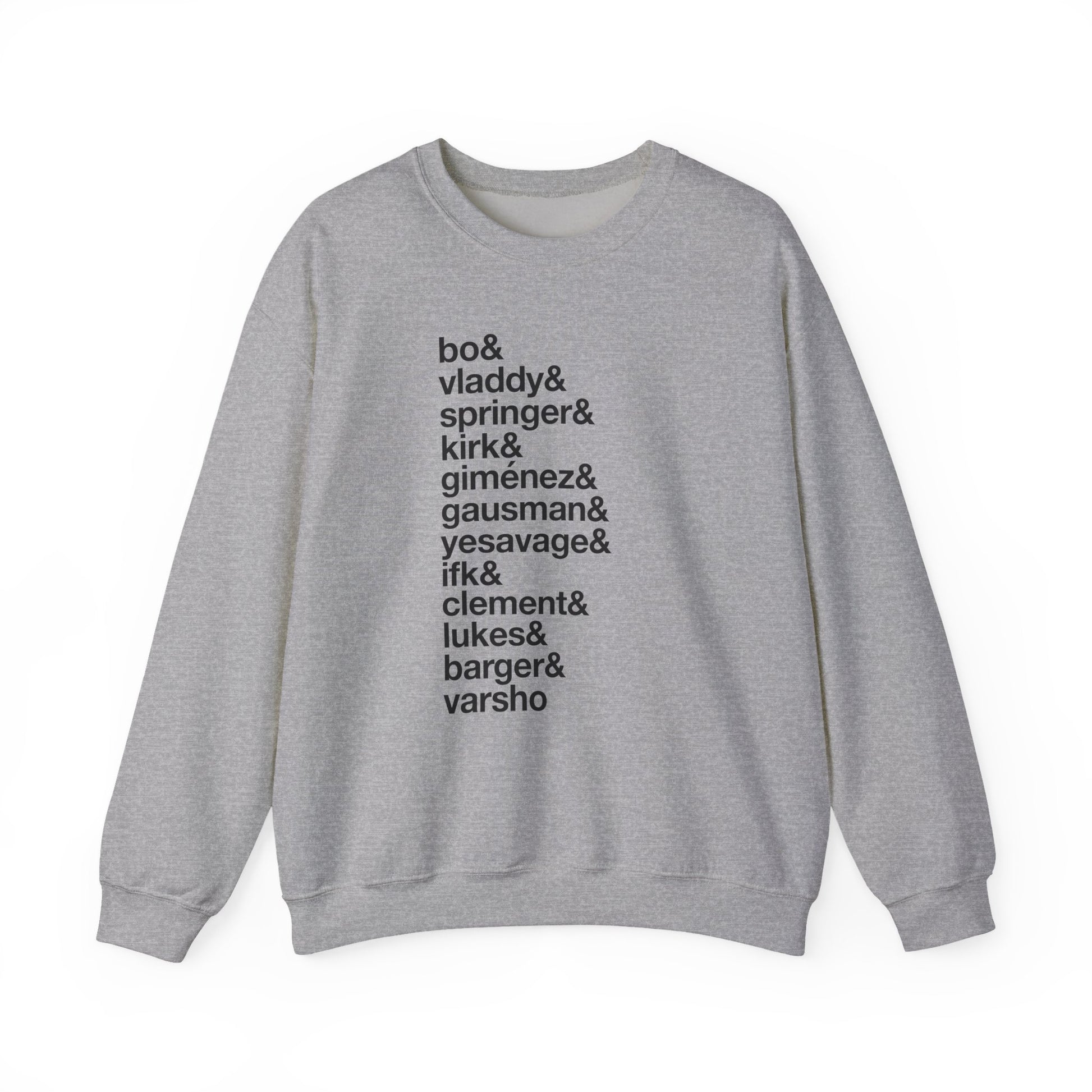 Introducing the ultimate way to rep your team: Blue Jays Player Crewneck Sweatshirts. These cozy garments don’t just keep you warm; they’re a wearable roster of your baseball heroes. Imagine heading to the ballpark or watching from home in a sweatshirt emblazoned with the names of your favorite Blue Jays players proudly displayed across your chest. It’s a bold, stylish way to show off your team spirit and instantly connect with fellow fans. Whether you’re cheering from the stands, catching the game at your go-to sports bar, or running errands on an off day, these sweatshirts are the perfect conversation starter and a must-have addition to any true Blue Jays fan’s wardrobe.